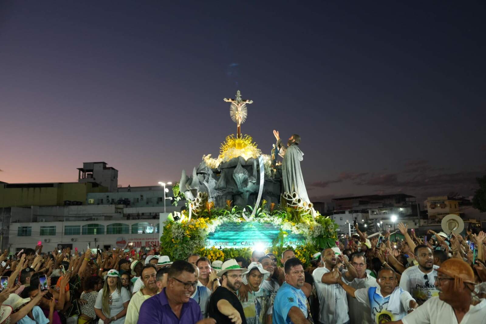 A tradicional procissão com o andor do Bom Jesus saiu da Catedral de Nossa Senhora do Carmo às 17h e seguiu, abraçada por milhares de devotos, até a triunfal entrada na esplanada do Santuário.