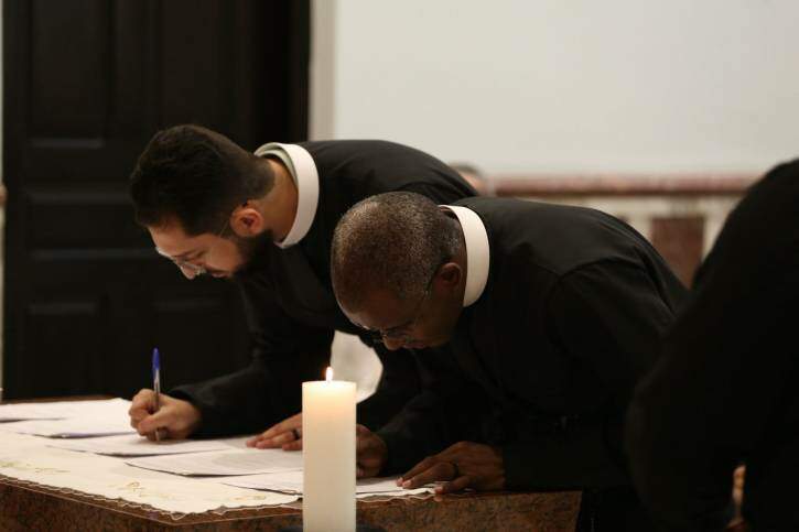 “O Papa Francisco costumava dizer que ‘onde estão os religiosos deve existir alegria e boas relações’. Que o voto de castidade se torne uma vida ainda mais fértil, que floresça em relações de amizade, cordialidade e disponibilidade. E, no voto de obediência, que saibamos criar comunhão com a Igreja, com a Congregação e com a Província, participando não por obrigação, mas por identificação com essa missão.”