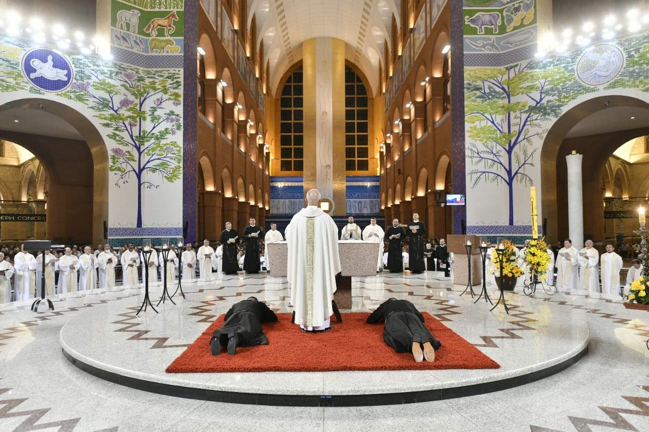 O Santuário Nacional de Nossa Senhora Aparecida acolheu, na noite do último sábado (30/04), o momento mais esperado pelos Missionários Redentoristas Ir. André Luiz Silva Oliveira e Ir. Marco Lucas Tomaz: a celebração da profissão perpétua dos votos de castidade, obediência e pobreza na Congregação do Santíssimo Redentor.