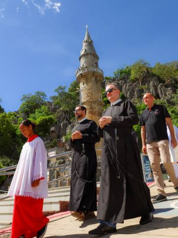 Após a Santa Missa, foi realizada uma procissão em direção à rádio, onde aconteceram a cerimônia de reinauguração e a bênção do local.