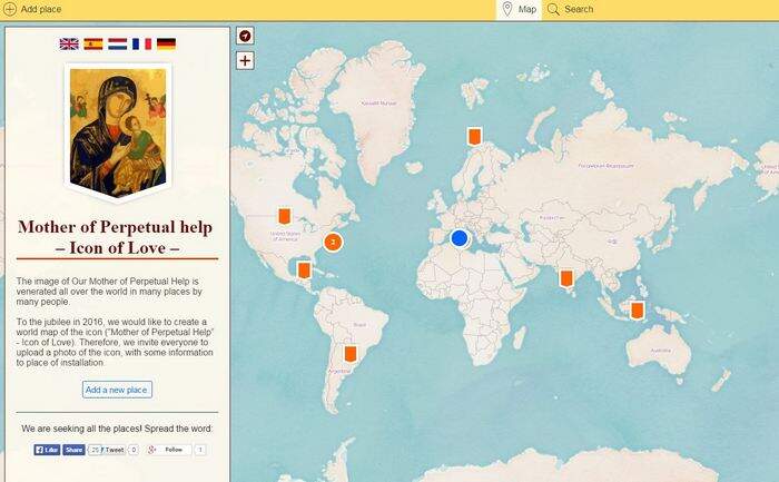 A Congregação do Santíssimo Redentor por meio de um ministério de jovens do Colégio alemão Josephinum, localizado em Bonn, lançou um projeto audacioso: registrar em uma plataforma online todos os lugares onde se manifesta a devoção ao Ícone da Mãe do Perpétuo Socorro. A proposta surgiu dentro da comemoração do jubileu dos 150 anos da entrega do ícone aos Redentoristas.