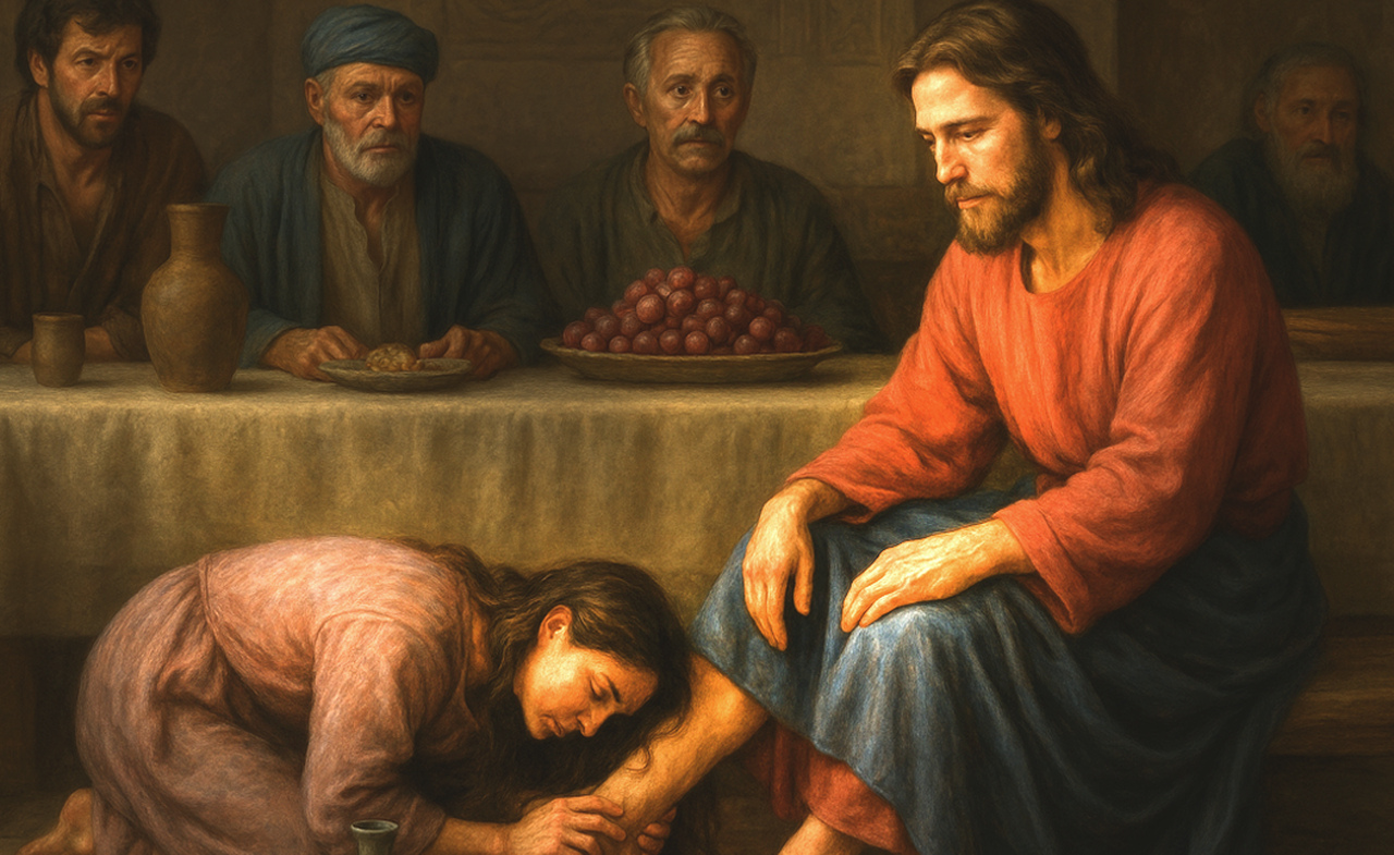Jesus vai até Betânia, antes da Páscoa, para visitar seus amigos pela última vez. Maria (irmã de Lázaro) unge os pés de Jesus com um perfume, gesto que simboliza adoração, entrega total e preparação para a morte de Cristo (Jo 12:7). Santo Afonso, em Glórias de Maria, descreve a Virgem Maria como aquela que "ofereceu seu Filho ao Pai como vítima de expiação pelos pecadores”.