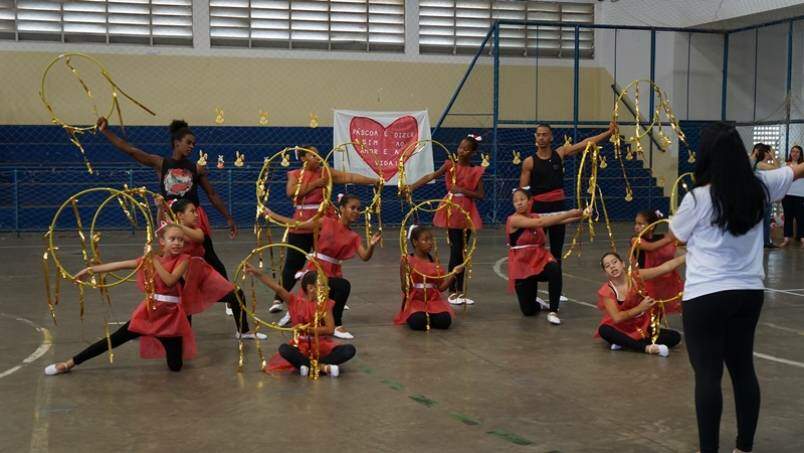 A abertura da atividade foi feita pelo grupo de balé e hip hop do CAS, organizado pela monitora de dança Marina, através de uma breve contação de história sobre o tema da Páscoa e duas apresentações de dança.