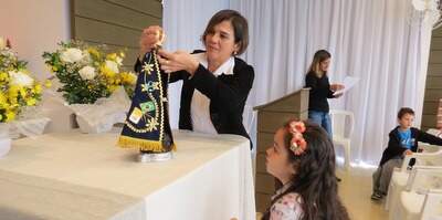 Ofereceram flores sinal da festa e da alegria; ofereceram o manto sinal da proteção de Maria e depois a Coroa como reconhecimento por Nossa Senhora Aparecida ser a Rainha do nosso CEI que com júbilo trás o seu nome.