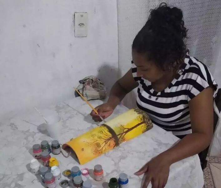 “Aqui o sinal de wi-fi é fraco, porque moro na Zona Rural, nos dias de chuva então fica pior, mas eu amo os cursos que faço no CAS e então eu ando, caminho, subo os morros só para conseguir pegar a internet e participar. Esses dias eu postei a pintura que fiz no curso em um grupo do Facebook, e eu tive mais de 2 mil curtidas e 500 comentários, isso me deixou muito feliz e me mostrou como vale a pena eu me esforçar para estar presente nas oficinas on-line. E também, eu aprendi a fazer bolos na oficina de culinária, semana passada mesmo vendi dois bolos, isso tem me ajudado muito”, ressalta Sueli.