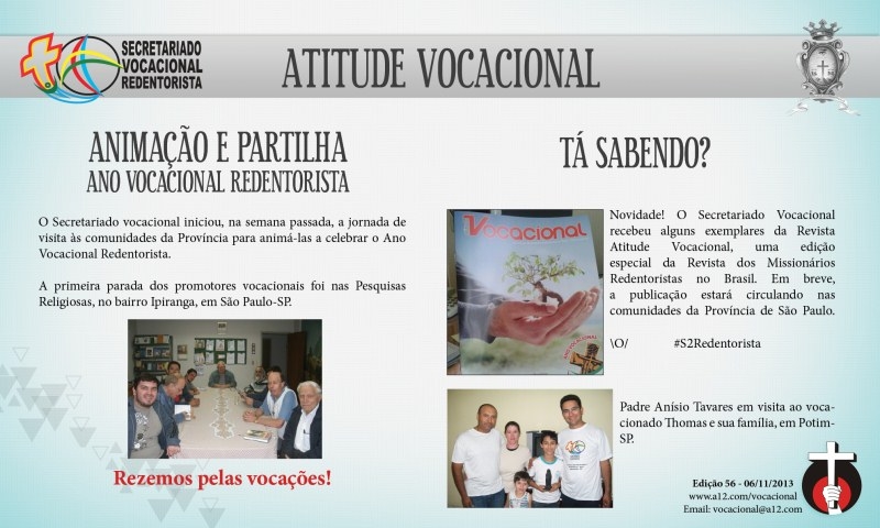 De agora em diante, passamos a divulgar o informativo Atitude Vocacional também em nosso site! Nele você acompanha as principais notícias vocacionais da semana.