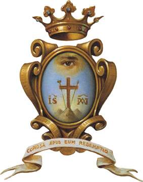 “O selo da Congregação é formado por uma cruz com a lança e a esponja, colocada em três montanhas; nos lados da cruz estão os nomes abreviados de Jesus e Maria; na cruz, um olho com raios de luz e acima de tudo uma coroa. Em volta do selo está escrito: Copiosa Apud Eum Redemptio (cf. Salmo 129,7)”.