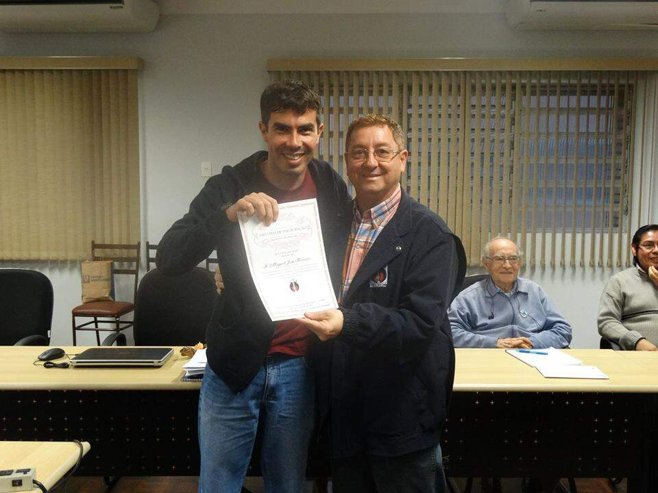 Ir. Miguel Pereira recebe o certificado do Segundo Noviciado Missionário, realizado em Aparecida-SP.