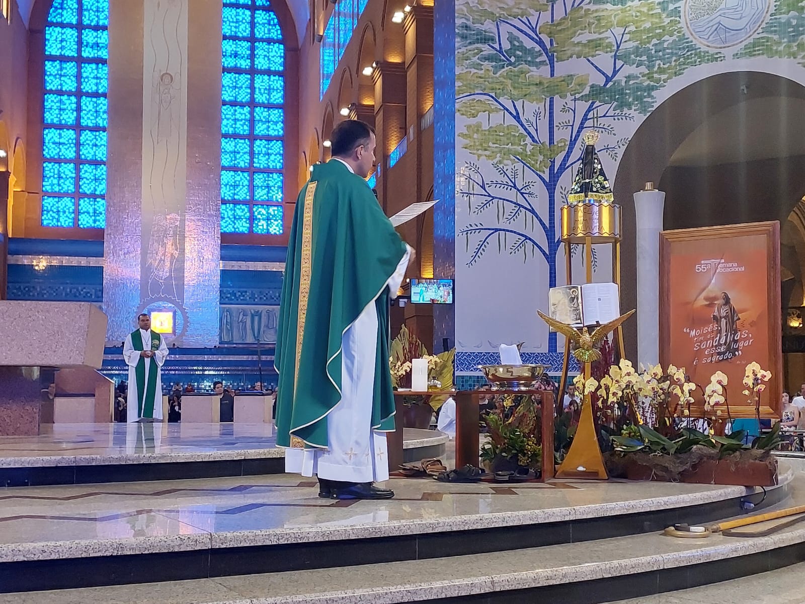 A celebração foi presidida pelo Pe. Renan Rangel, da Arquidiocese de Aparecida, e contou com animação do Ir. Cláudio Aparecido Teixeira, C.Ss.R., Promotor Vocacional Redentorista. Ao redor do altar, muitas famílias e a presença marcante da Romaria dos Acólitos e Coroinhas da Paróquia São João Batista, da cidade de Arapoti (PR).