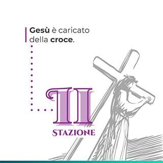 Si considera in questa seconda Stazione la rassegnazione di Gesù Cristo nel sottoporre le sue spalle alla croce onde animarci a camminare dietro di Lui per la via della mortificazione e della penitenza. Benedico, Gesù mio, l'immensa carità con cui per mio amore riceveste sulle vostre piagate spalle la pesantissima croce, e vi prego a darmi grazia di pazientemente portare per la spinosa via del mondo la croce dei miei travagli, senza scostarmi giammai dalla vostra santissima volontà.