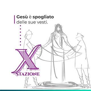 Si considera in questa decima Stazione il rossore provato da Gesù Cristo nell'essere spogliato in faccia a tutti, affine di espiare le nostre vanità e le nostre Immodestie. Indi fu amareggiato di fiele per iscontare i debiti da noi contratti per tante golosità. Deh! per quel santo rossore che vi comprese, o Gesù mio, nell'essere pubblicamente spogliato delle vostre vesti, concedetemi la grazia di spogliarmi di tutti gli abiti peccaminosi, e di sprezzare coraggiosamente le dicerie dei libertini e tutti i pregiudizi del mondo.