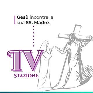 Si considera in questa quarta Stazione l'ineffabile dolore che provarono reciprocamente Gesù Cristo e la sua SS. Madre nell'incontrarsi sulla via del Calvario, affine di ottenere a noi la grazia di fuggire con ogni cautela tutti gli incontri pericolosi. Deh, potessi anch'io o mio Gesù stemprarmi in pianto per compassione alla vista dei vostri affanni, onde apportarvi colle mie lagrime qualche conforto! Intanto vi prego, o Gesù, per le agonie di vostra Madre, e voi pure, prego, o Maria, per i dolori del vostro Figlio, a intenerirmi il cuore ed a far sì che, piangendo fino alla morte, possa avere la bella sorte d'incontrarvi e d'intrattenermi con voi per sempre nella beatitudine del paradiso.