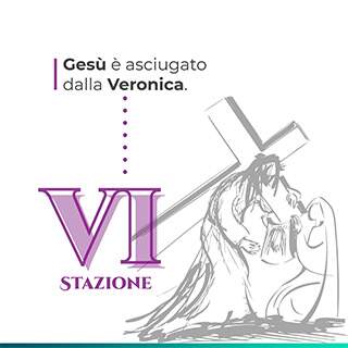 Si considera in questa sesta Stazione come Gesù Cristo lasciò impressa l'immagine del suo volto sul panno della Veronica che si inoltrò fra le turbe affine di rasciugarlo, e con ciò ci insegna il dovere di disprezzare tutti i rispetti umani se vogliamo avere il suo ritratto scolpito nel nostro cuore. Ammiro, Gesù mio, la generosa pietà della Veronica, nell'inoltrarsi senza timore fra le turbe insolenti per rasciugarvi la faccia tutta grondante di sudore e di sangue; e per i meriti di sì bel coraggio, vi prego a darmi forza di vincere ogni rispetto umano e di sempre più avanzarmi nel vostro amore.