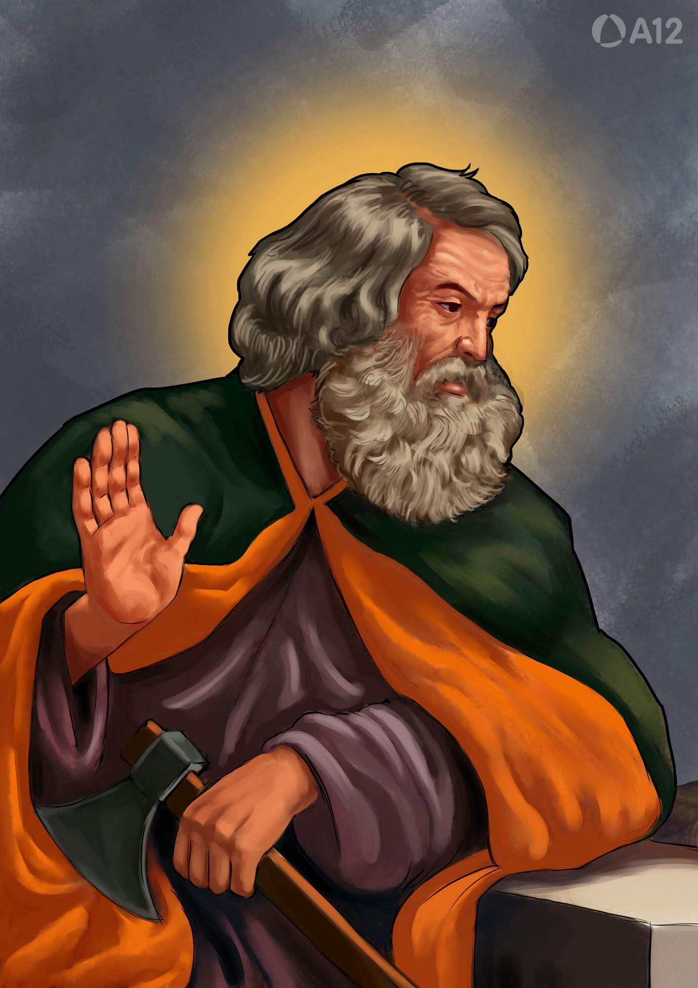 É normalmente representado com um machado ou uma alabarda, símbolos da força do cristianismo e do martírio; o machado também está ligado, por causa do martírio, ao seu patronato dos açougueiros e carpinteiros.