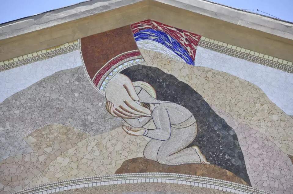 Esses e os outros mosaicos das demais fachadas são como um organismo, onde tudo está interligado, o que impede qualquer um de se lembrar de si mesmo sem conjuntamente ver o rosto do outro, Daquele que por ele deu a própria vida para que possa viver, e que o faz sentir o quanto é precioso aos seus olhos. Os mosaicos fazem memória de uma realidade que abraça toda a nossa existência e a ultrapassa, abraçando a existência do universo e a existência do Rosto do Pai, do Filho e do Espírito, que regeneram completamente a minha existência.