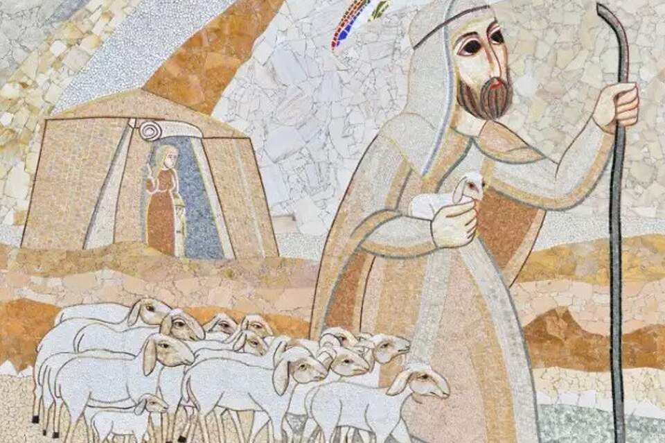 Moisés caminha pelo deserto pastoreando o rebanho de seu sogro e vê uma sarça pegando fogo. Ele se detém, olha, e vê que a pequena árvore não é consumida. Ele se aproxima para analisar e entender. Ali, escuta uma voz que o chama pelo nome, o que representa que Moisés não é um desconhecido para Deus. Ali, ele descobre sua vocação.