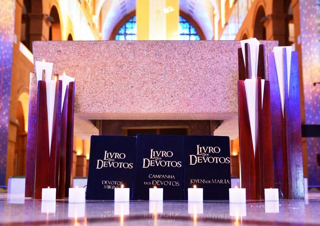 2) Desde 2016, são colocados 3 livros sob o altar central durante Festa da Padroeira: Devotos Mirins, Jovens de Maria e Devotos Missionários;