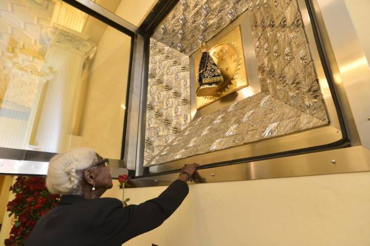 Mais mantos foram abençoados e pedacinhos serão encaminhados para os fiéis devotos da Mãe Aparecida espalhados por todo o Brasil. Que de norte a sul, leste a oeste chegue a bênção de Nossa Senhora, a partir no Santuário Nacional.