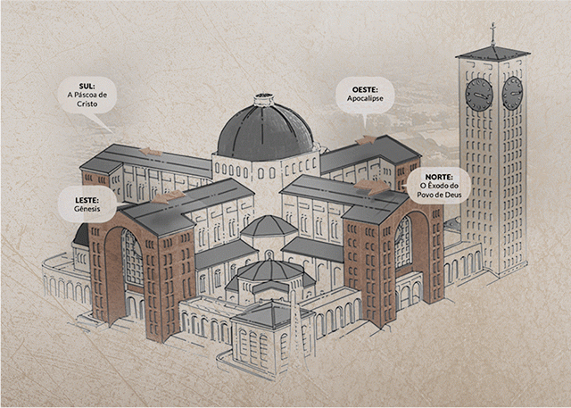 Serão mais de 15 mil metros quadrados de paredes a serem tratadas pelas equipes de engenharia e obras do Santuário, para depois o padre Rupnik, responsável pela arte deste projeto, revestir as fachadas tendo como inspiração importantes passagens bíblicas.