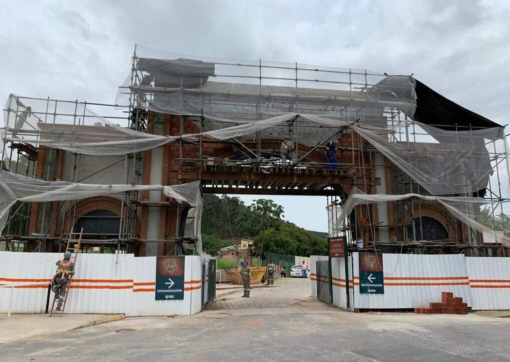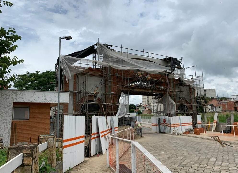 Dentre as obras de acolhimento, iniciamos a construção do Pórtico de entrada da Cidade do Romeiro.