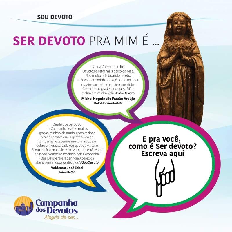 Cada pessoa tem a sua forma de expressar o sentimento de “Ser Devoto”. De elevar suas preces, fazer pedidos e agradecimentos, e também de se entregar ao serviço da evangelização para propagar a devoção a Nossa Senhora. Esse é o sentido genuíno de ser devoto e também de pertencer à Família dos Devotos: motivar, inspirar, comunicar e divulgar a devoção a Nossa Senhora Aparecida, levando os exemplos, o amor e as graças da Mãe Aparecida por todo o Brasil.