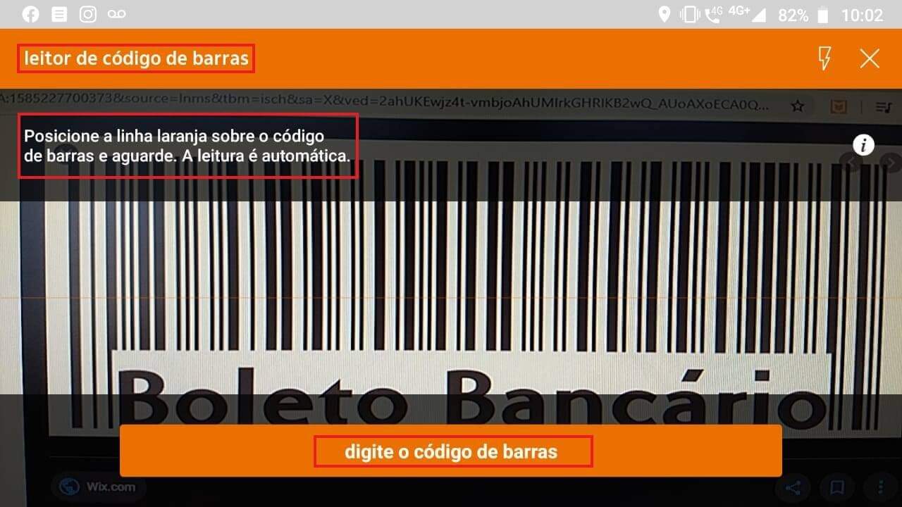 4. Em seguida, é só pegar o boleto e alinhar a câmera do celular no código de barras. Se preferir, você pode fazer o pagamento digitando o código de barras.