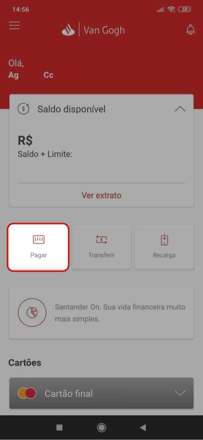 1. Abra o aplicativo, faça login, utilizando o número da sua agência, conta e senha.