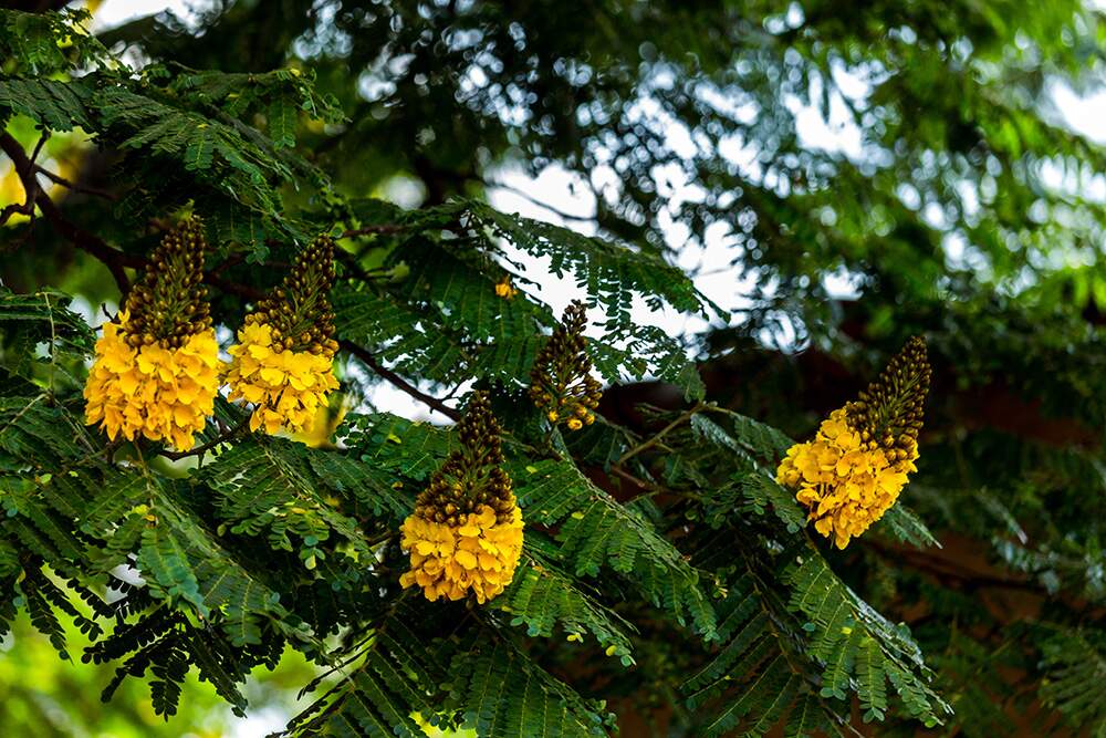 Ela pode atingir até 16 metros de altura e tem folhas pequenas e delicadas. Suas flores amarelas aparecem entre julho e novembro, trazendo beleza e cor para as ruas, praças e jardins. Depois da floração, surgem os frutos em forma de vagens, que amadurecem entre setembro e dezembro.
