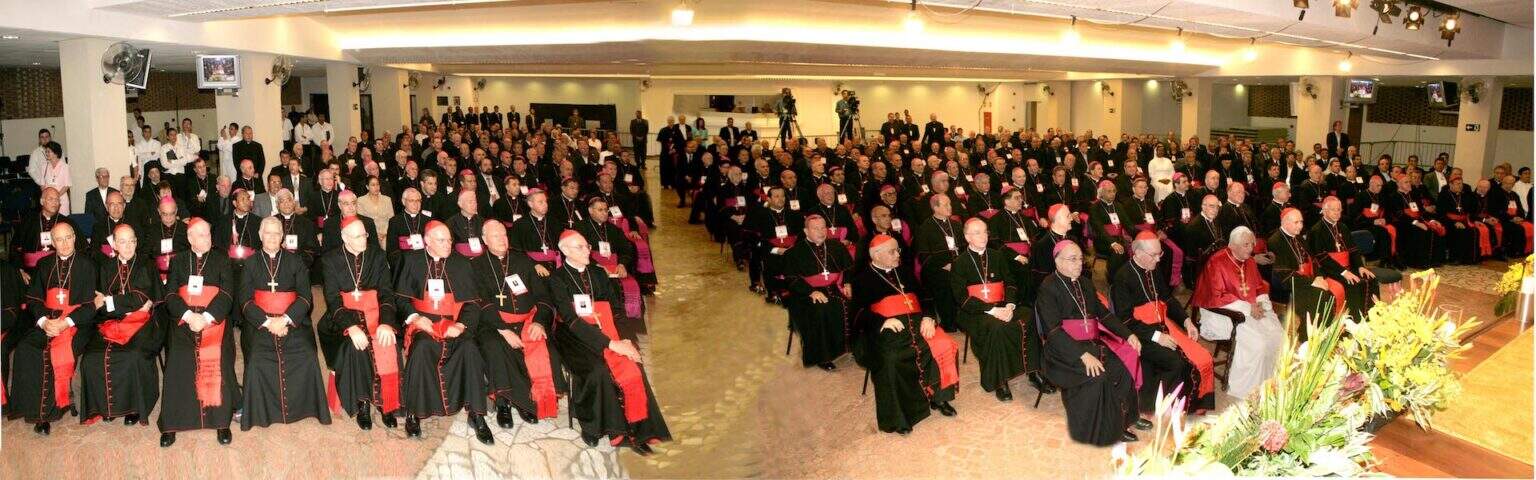 De 13 a 31 de maio de 2007, representantes das 22 conferências episcopais aqui se reuniram, com a presença de Cardeais, Arcebispos, Bispos, sacerdotes, religiosos e religiosas, leigos e leigas, para ouvir o que o Espírito Santo dizia à Igreja e, na escuta, discernir caminhos para a ação evangelizadora em todo o continente.