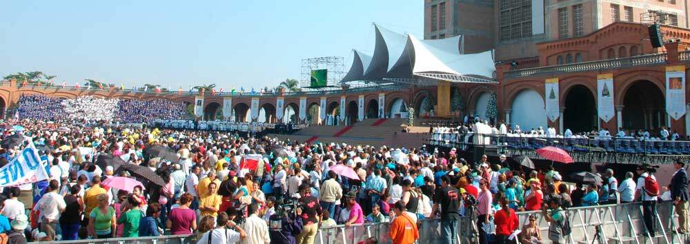 “Não existem palavras para exprimir a alegria de encontrar-Me convosco para celebrar esta solene Eucaristia, por ocasião da abertura da V Conferência Geral do Episcopado Latino-americano e do Caribe. Deste Santuário estendo o meu pensamento, com muito afeto e oração, a todos aqueles que se nos unem espiritualmente neste dia, de modo especial às comunidades de vida consagrada, aos jovens engajados em movimentos e associações, às famílias, bem como aos enfermos e aos anciãos.