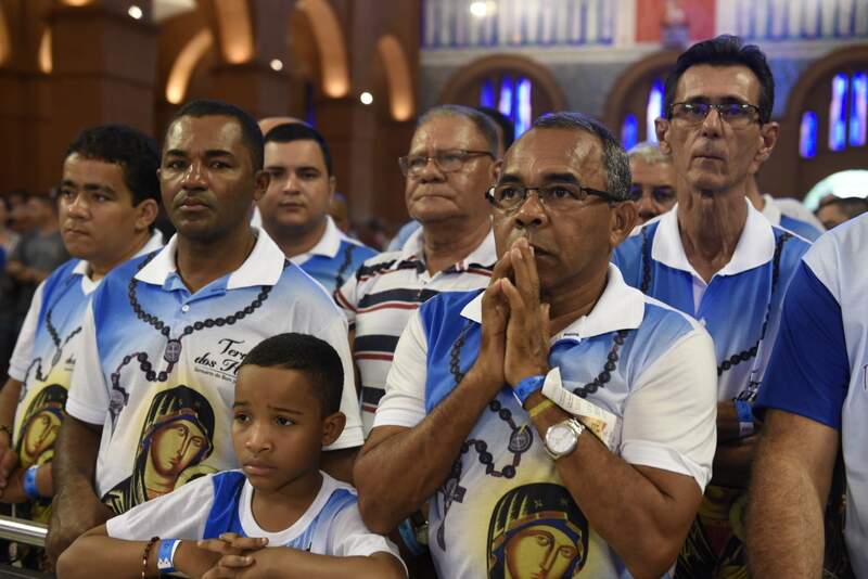 Presidida pelo Arcebispo de Aparecida, Dom Orlando Brandes, para uma multidão de pessoas em frente a Tribuna Papa Bento XVI, o Terço dos Homens se mostra mais forte ano a ano.