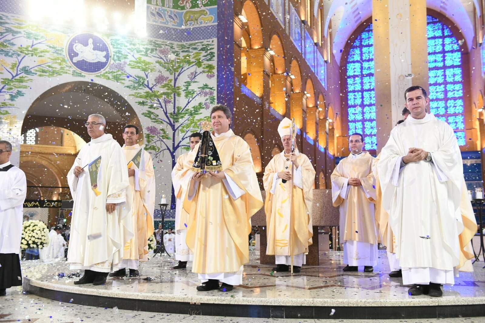 No final da celebração, Pe. Marlos Aurélio da Silva, Superior Provincial Redentorista, Pe. Eduardo Catalfo, Reitor do Santuário e Pe. Luiz Cláudio Alves de Macedo, Ecônomo-Administrador do Santuário, depositaram os ‘Livros dos Devotos’, sob a mesa do Altar Central.