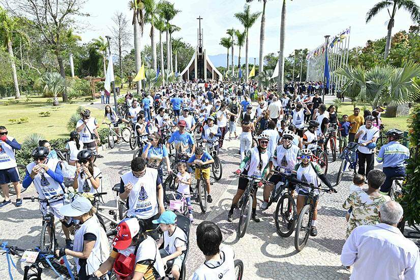 A devoção à Mãe Aparecida pode ser demonstrada de várias formas diferentes: a pé, de carro, de caminhão, de charrete e, por que não, de bicicleta?