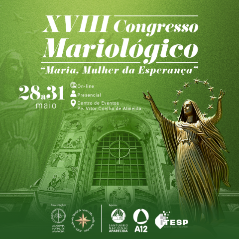 Na próxima quarta-feira (28), às 19h, acontece a abertura do XVIII Congresso Mariológico, promovido pela Academia Marial de Aparecida, em parceria com o Instituto São Paulo de Estudos Superiores (ITESP) e o Portal A12. A temática do congresso deste ano é "Maria, Mulher da Esperança". O evento ocorre até o dia 31 de maio de forma online e presencial, no Centro de Eventos Pe. Vitor Coelho de Almeida, localizado no complexo do Santuário Nacional.