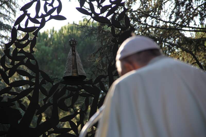Pouco antes das 10h, no horário local, um monumento que homenageia Nossa Senhora Aparecida foi abençoado e passou a integrar um espaço dedicado à memória da Virgem Maria, sob seus mais diversos títulos. A Imagem da Padroeira do Brasil, em bronze com tonalidade dourada, passou a refletir a luz do sol àqueles que a partir de agora caminharem pelos Jardins do Vaticano.