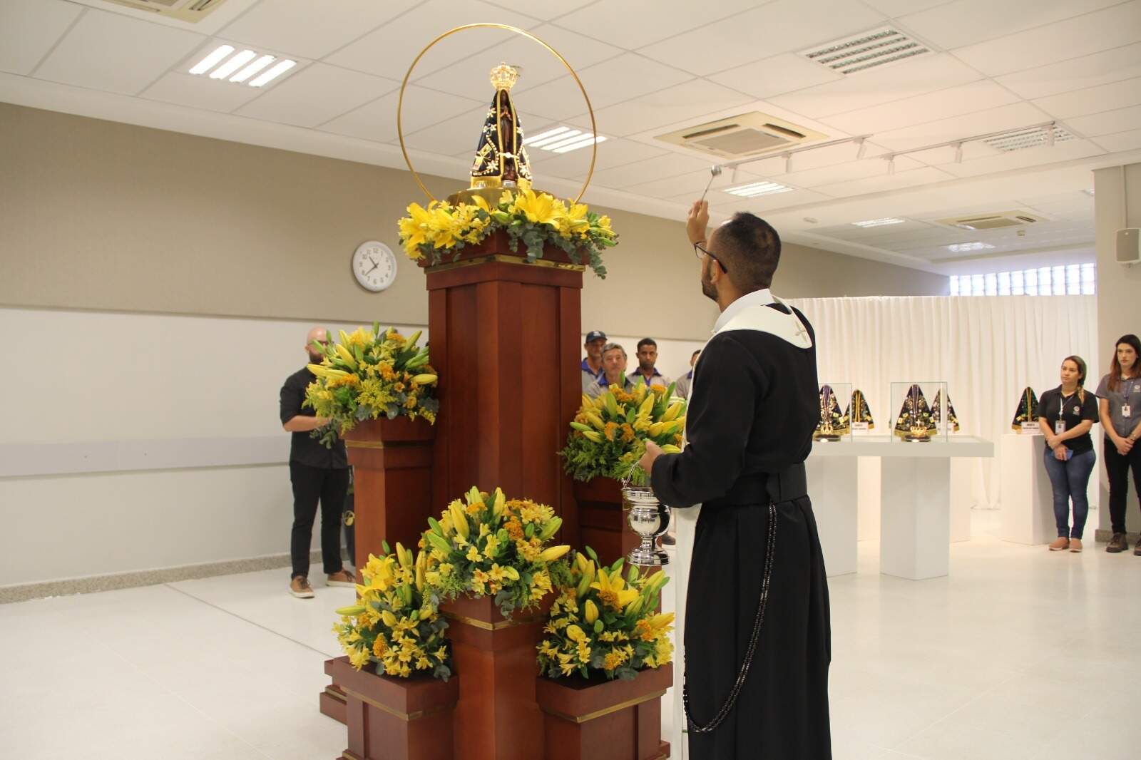 A cerimônia contou com a presença do Missionário Redentorista, padre Diego Antônio, das irmãs do Carmelo de Santa Teresinha do Menino Jesus, do arquiteto Almir José Neto, responsável pelo projeto do trono, e dos colaboradores da marcenaria do Santuário Nacional, que executaram a confecção.