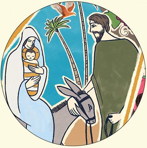 Essa cena é também um símbolo da migração, da vulnerabilidade e da esperança de um futuro seguro, especialmente para os pobres, os excluídos e todos os que são forçados a fugir para proteger a vida. Ela nos remete, ainda, ao ícone clássico da Teotókos (Mãe de Deus), pois Maria educou seu Filho na fé, reforçando, assim, sua missão de catequista do Povo de Deus.