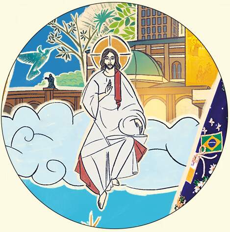 O Cristo glorificado entre nuvens simboliza tanto a revelação de Jesus como presença real e salvadora e o horizonte escatológico da fé cristã. Por isso, quando acolhemos as Bem-Aventuranças como caminho de vida, justiça e de paz, nos colocamos em jornada, rumo à Jerusalém Celeste.