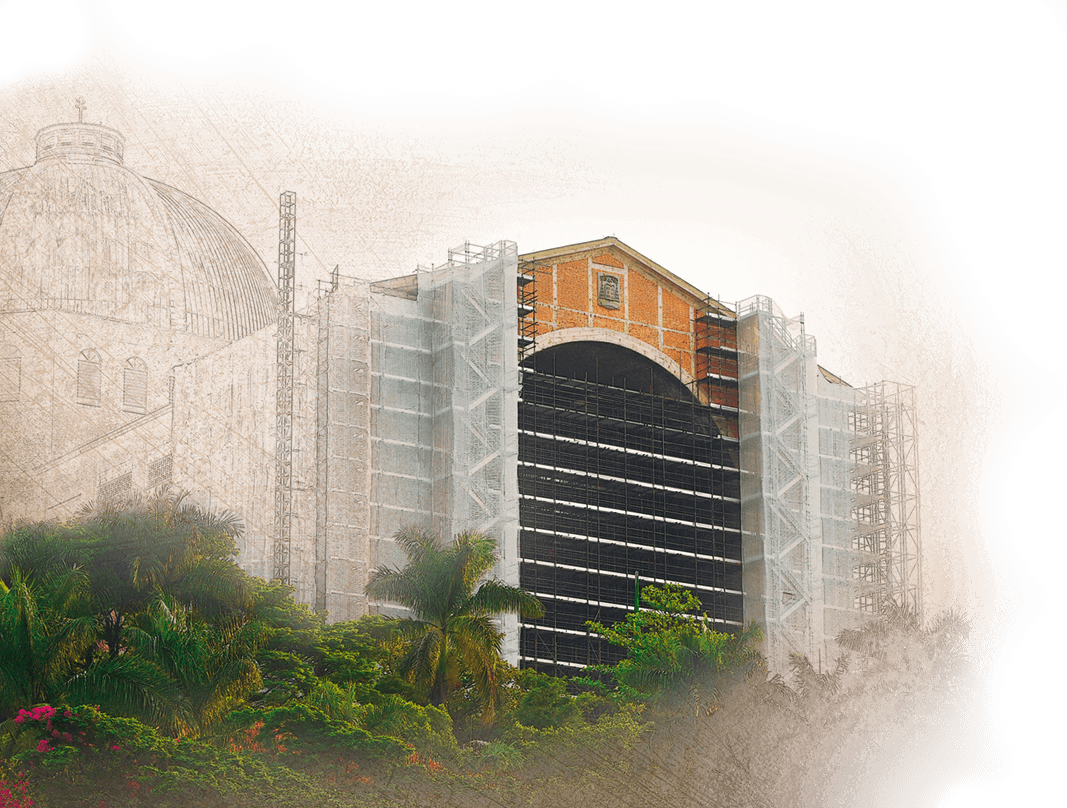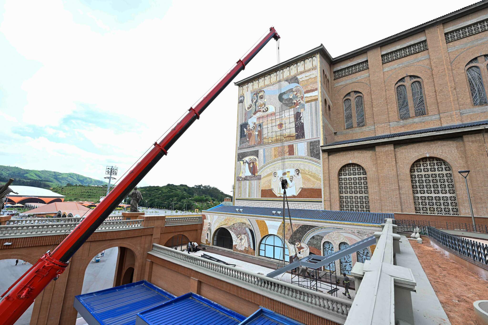 O revestimento da Fachada Norte é apenas a primeira etapa, de um projeto lindo de evangelização, que vai transformar o Santuário Nacional de Aparecida em uma enorme Bíblia a céu aberto!