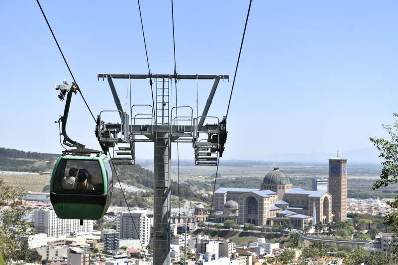 Parceria entre o Santuário Nacional e a BonTur, os bondinhos aéreos contam com 44 cabines de capacidade unitária para seis pessoas, em uma extensão aproximada de 1.300 metros sobre a cidade e a Rodovia Presidente Dutra, vencendo um desnível de 115 metros.