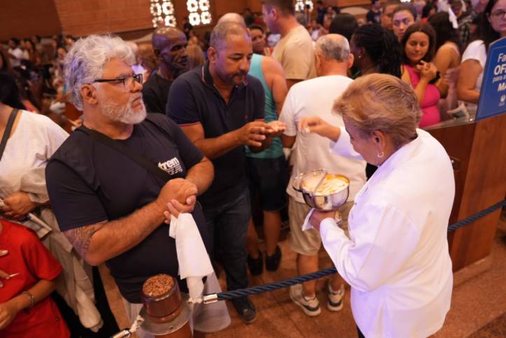 Logo após a procissão, os fiéis e devotos de Nossa Senhora participaram da celebração às 8h, presidida por Dom Orlando Brandes, Administrador Apostólico da Arquidiocese de Aparecida, e concelebrada pelos redentoristas e sacerdotes diocesanos.