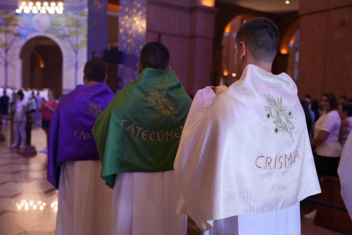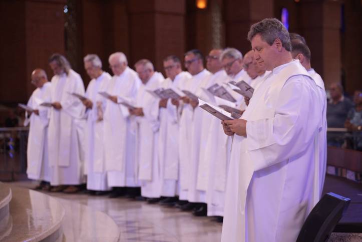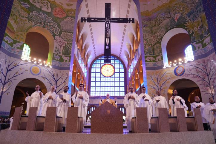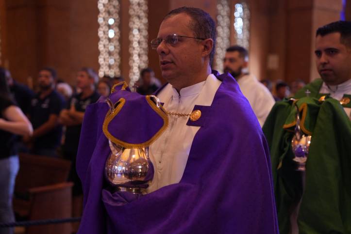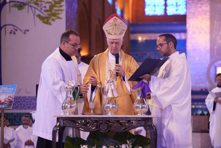 A Arquidiocese de Aparecida reuniu o clero e os fiéis no Santuário Nacional para a Missa do Crisma, também conhecida como Missa da Unidade no Altar Central, nesta Quinta-feira Santa (02). A celebração foi presidida por Dom Orlando Brandes, Administrador Apostólico de Aparecida.