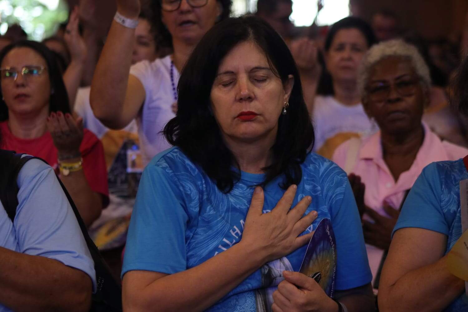 Neste sábado (15), dia consagrado a Nossa Senhora, milhares de mulheres se reuniram no Santuário Nacional para a missa solene da 12ª Romaria Nacional do Terço das Mulheres.
