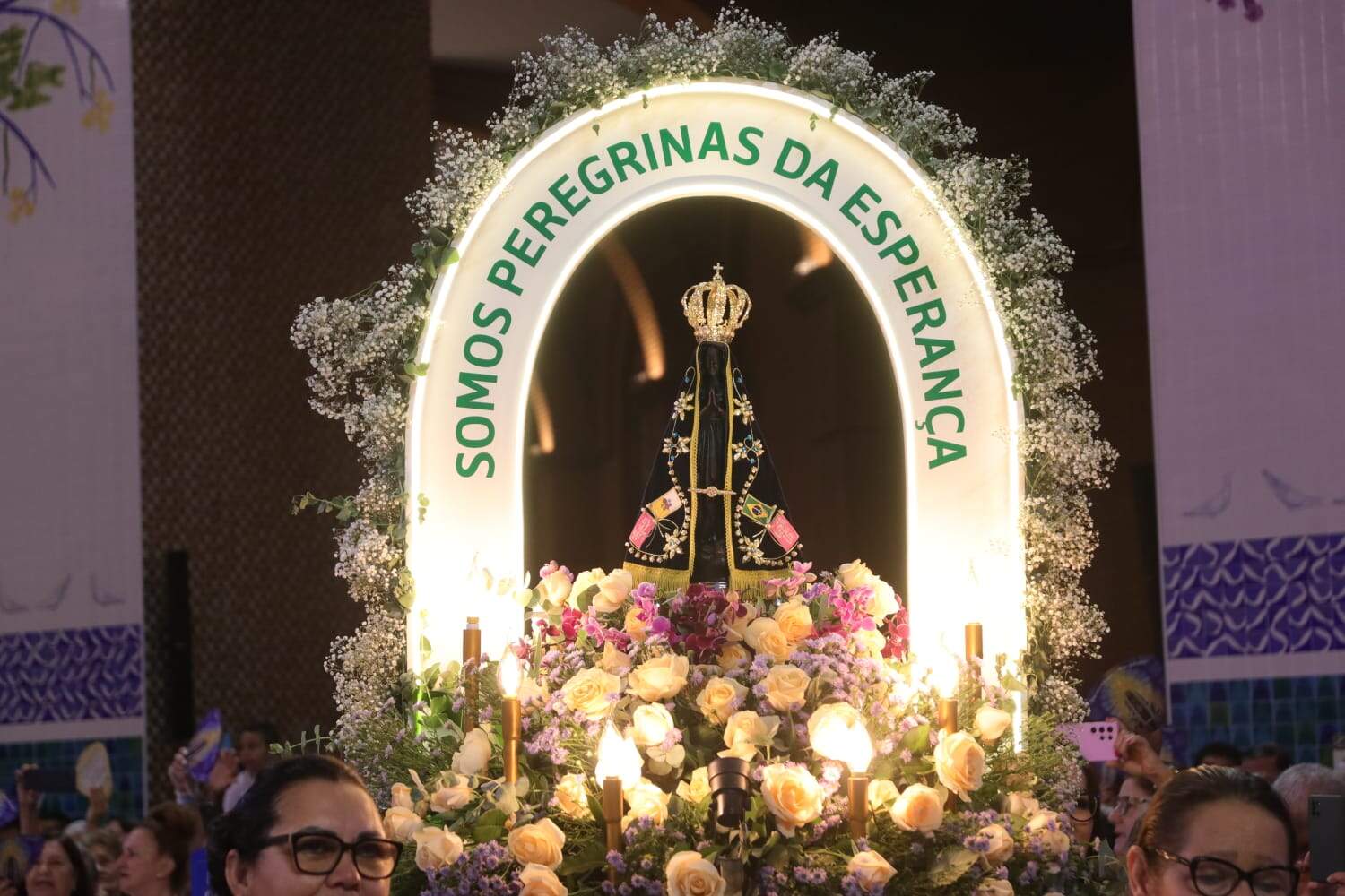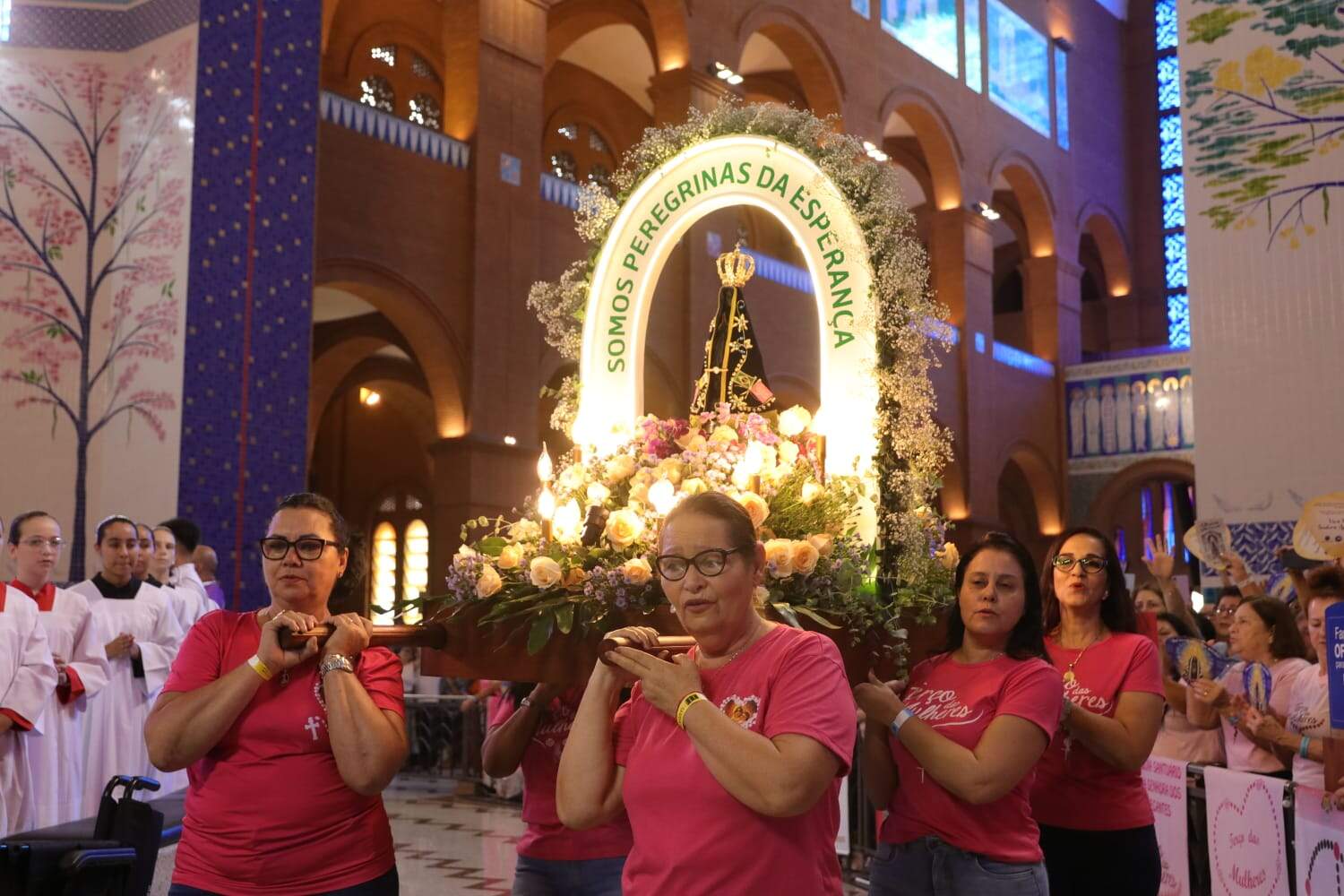 A entronização da imagem de Nossa Senhora Aparecida traz a mensagem do Jubileu que ecoa no coração das mulheres do terço: “Somos Peregrinas da Esperança”.