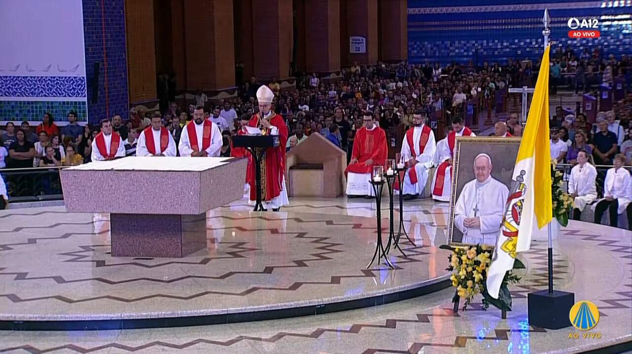 “Irmãos e irmãs, reunidos em torno do altar do Cristo, em louvor e ação de graças, ardentes de amor e zelo missionário, rezamos pelas nossas famílias e pela grande família que somos todos nós na Igreja. Elevemos uma prece especial em favor do Papa Francisco, sucessor do apóstolo Pedro, por sua saúde e para que Deus lhe de forças para continuar conduzindo a Igreja, para continuar trabalhando em favor da paz no mundo e para continuar envidando esforços no cuidado com os pobres e com a criação”.
