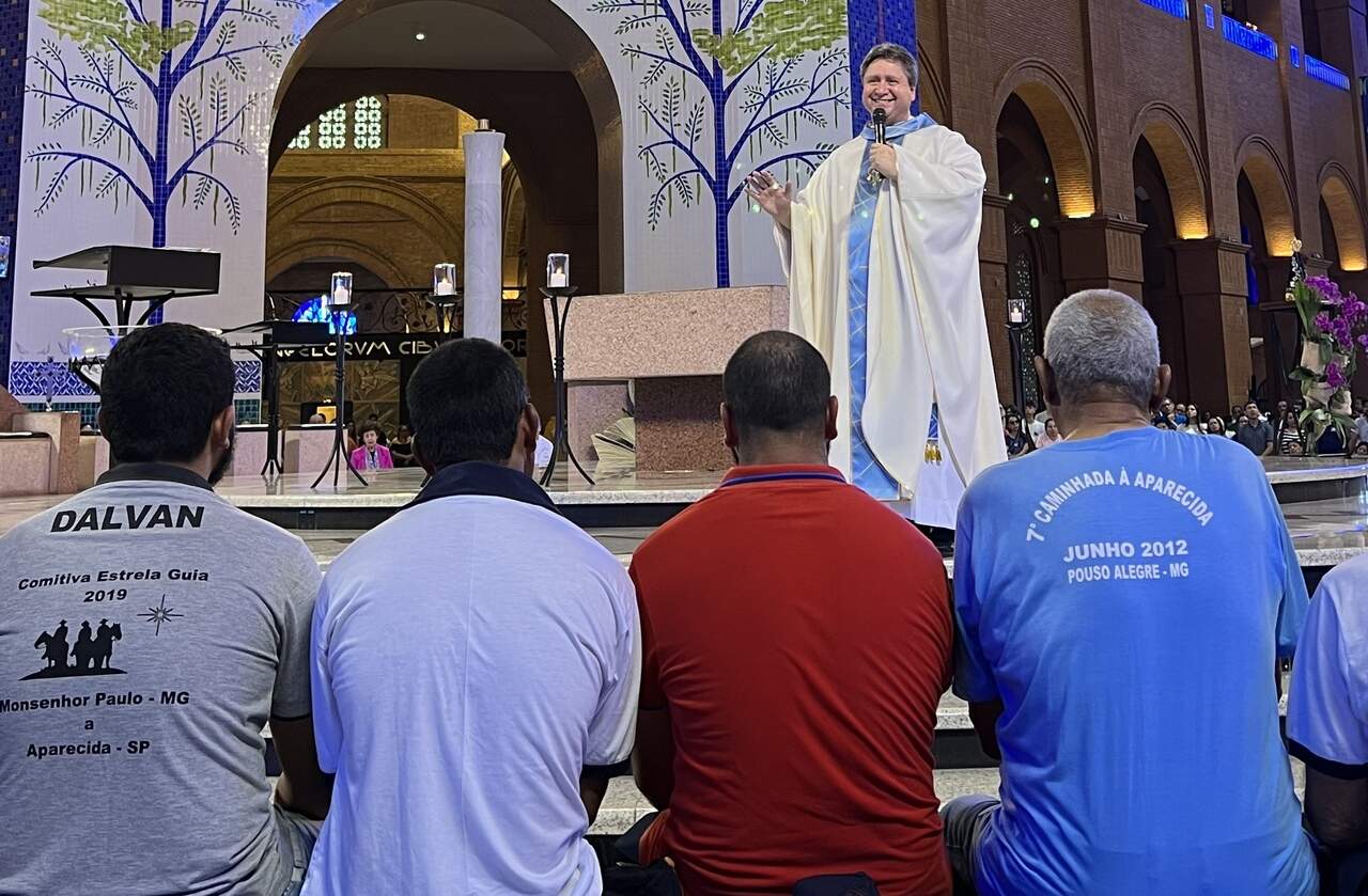 “Nossa saudação e nosso carinho sempre muito especiais a todos vocês devotos, peregrinos de Nossa Senhora. Visitar a Mãe Aparecida e o seu Santuário é uma grande alegria para todos nós!” disse o reitor em sua saudação inicial.
