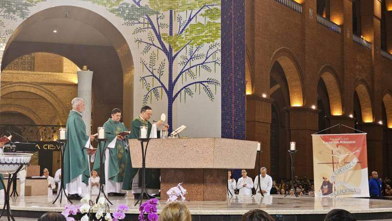 Na noite deste domingo (31), às 18h, o Santuário Nacional de Aparecida acolheu os devotos de Nossa Senhora na Santa Missa que marcou a abertura do Mês da Bíblia 2025.