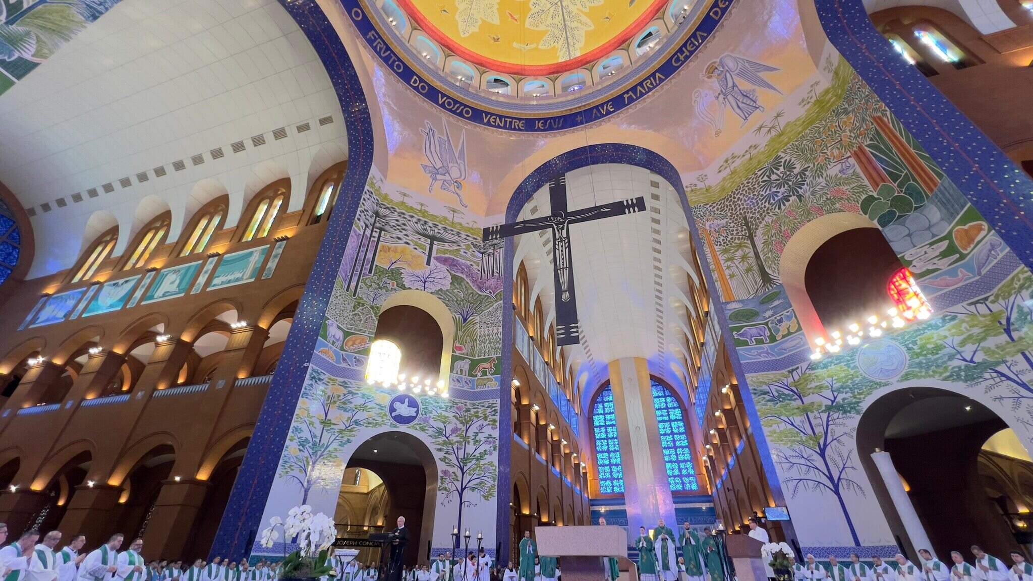 “Como é bom estar aqui no Santuário Nacional junto a Nossa Senhora! Toda vez que eu visito aqui, eu me consagro. Estou a completar 30 anos de sacerdócio, que é o jubileu de pérola. E é uma alegria.”