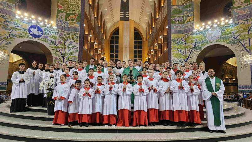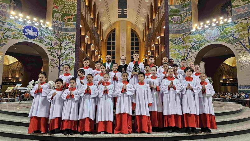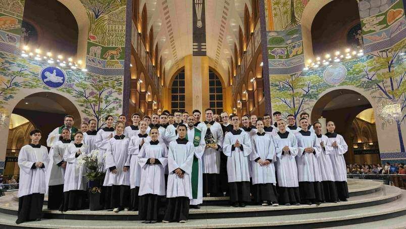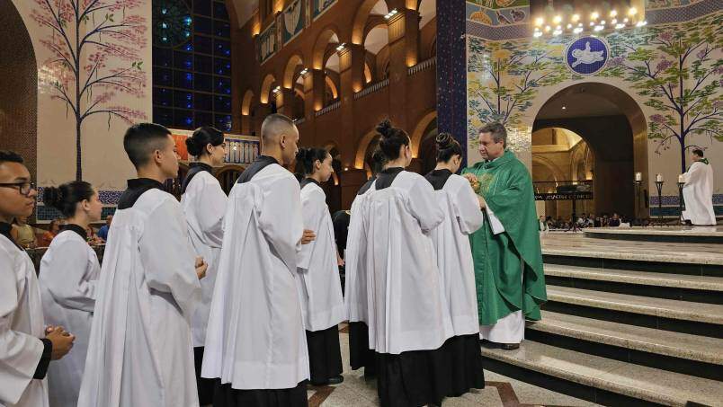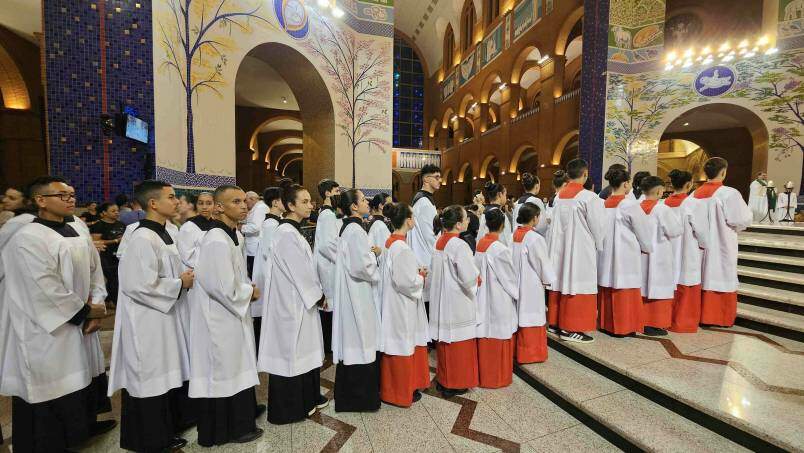Neste domingo (22), o Santuário Nacional recebeu coroinhas e acólitos para um momento especial no Altar Central, na Missa das 18h, onde foi celebrada a cerimônia de investidura e renovação de novos acólitos e coroinhas, que servirão na Casa da Mãe.