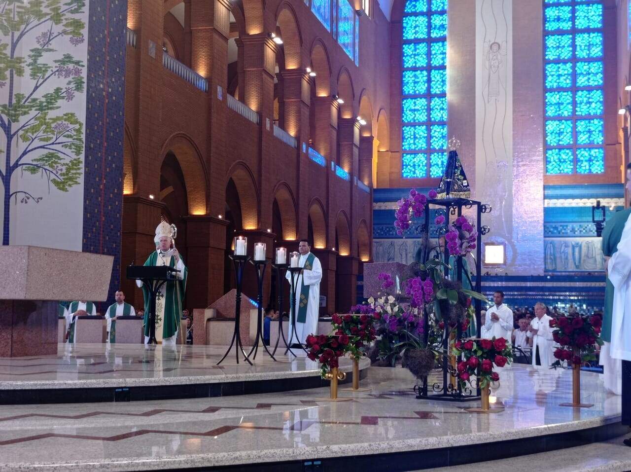 Na manhã deste domingo (24) no Santuário Nacional, foi celebrada pela Arquidiocese de Aparecida, em comunhão com o Papa Francisco, a Santa Missa em ação de graças pela abertura da Assembleia do Sínodo dos Bispos, que acontece no próximo dia 4 de outubro.